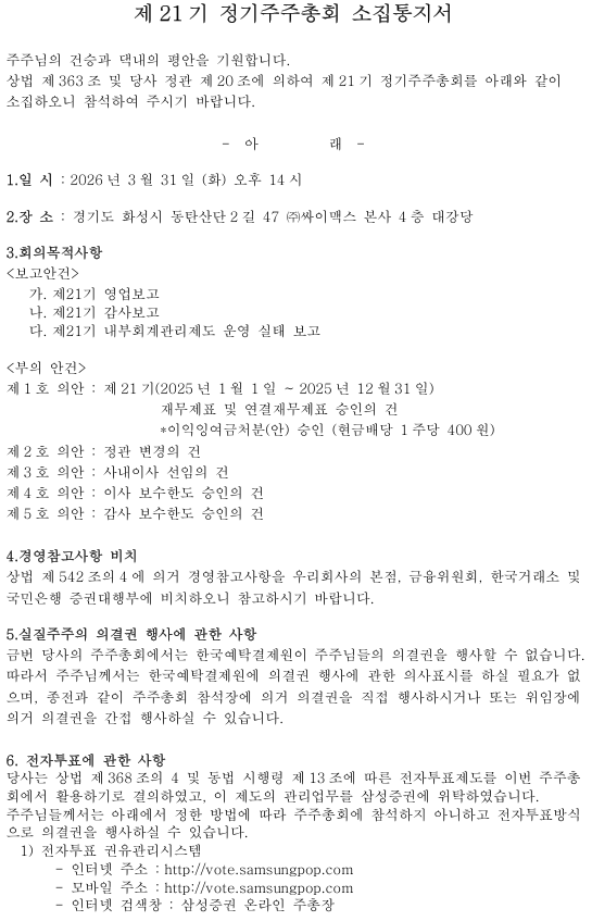 창의적인 인재육성과 선도기술을 바탕으로 끊임없이 변화하는 기업입니다. 제 13기 결산공고 공지/공고 > 제 13기 결산공고 공지/공고 2018.03.22 Share this:트위터로 공유하기 (새 창에서 열림)페이스북에 공유하려면 클릭하세요. (새 창에서 열림)구글 +1에서 공유하려면 클릭하세요 (새 창에서 열림) 포스트 이동 메뉴 이전 포스트제13기 정기주주총회 소집통지서다음 포스트2018년 청년친화 강소기업 선정